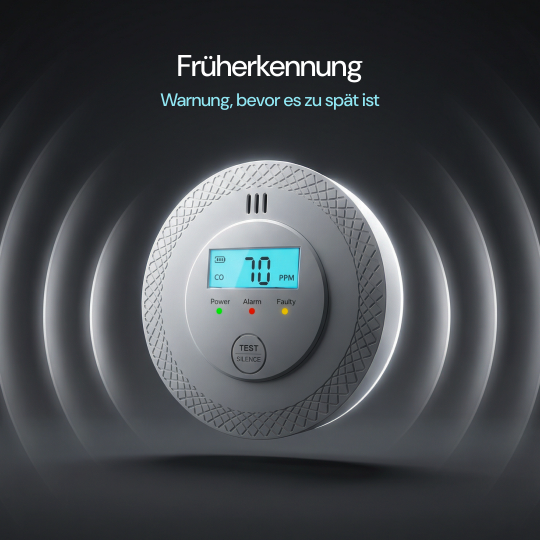 COalarm™ überwacht die Luft kontinuierlich auf Rauch und Kohlenmonoxid und nutzt moderne Sensoren, um Gefahren schneller und genauer zu erkennen als herkömmliche Melder.