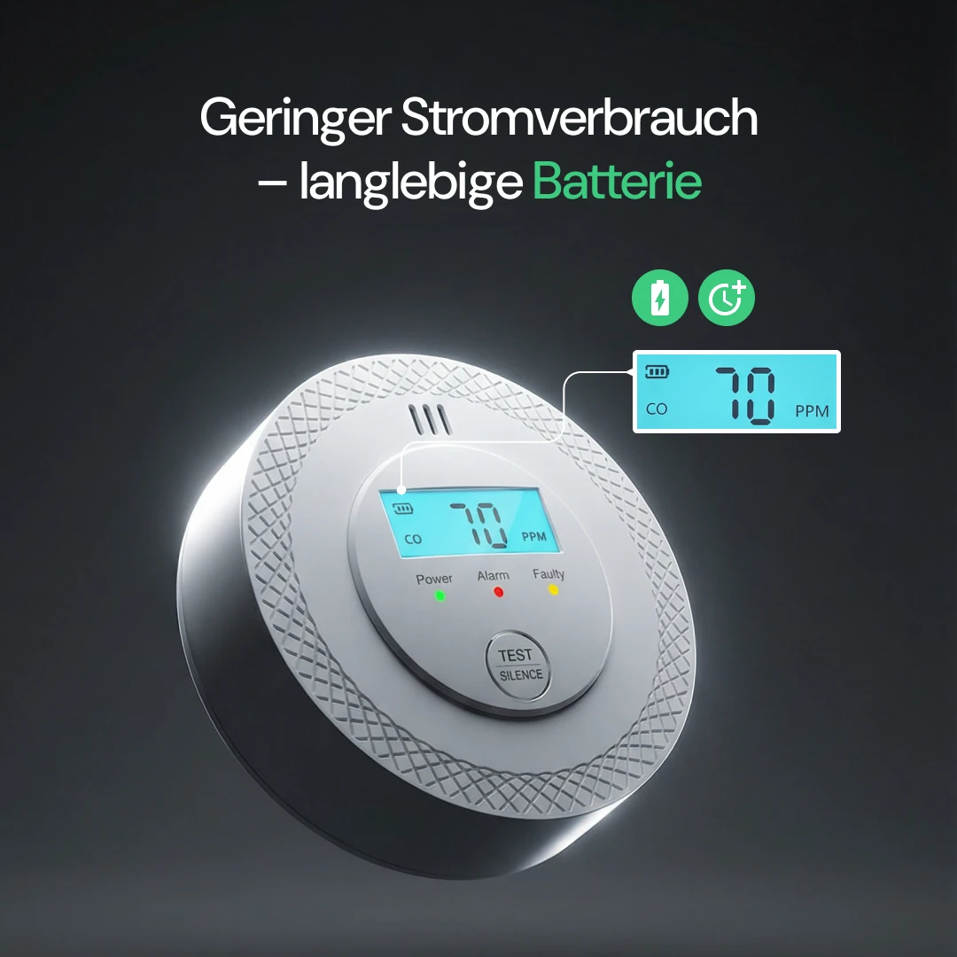 Jedes Gerät enthält eine Langzeitbatterie mit bis zu 10 Jahren Schutz. Wenn ein Austausch nötig ist, informiert Sie das Display rechtzeitig – einfach und sorgenfrei.