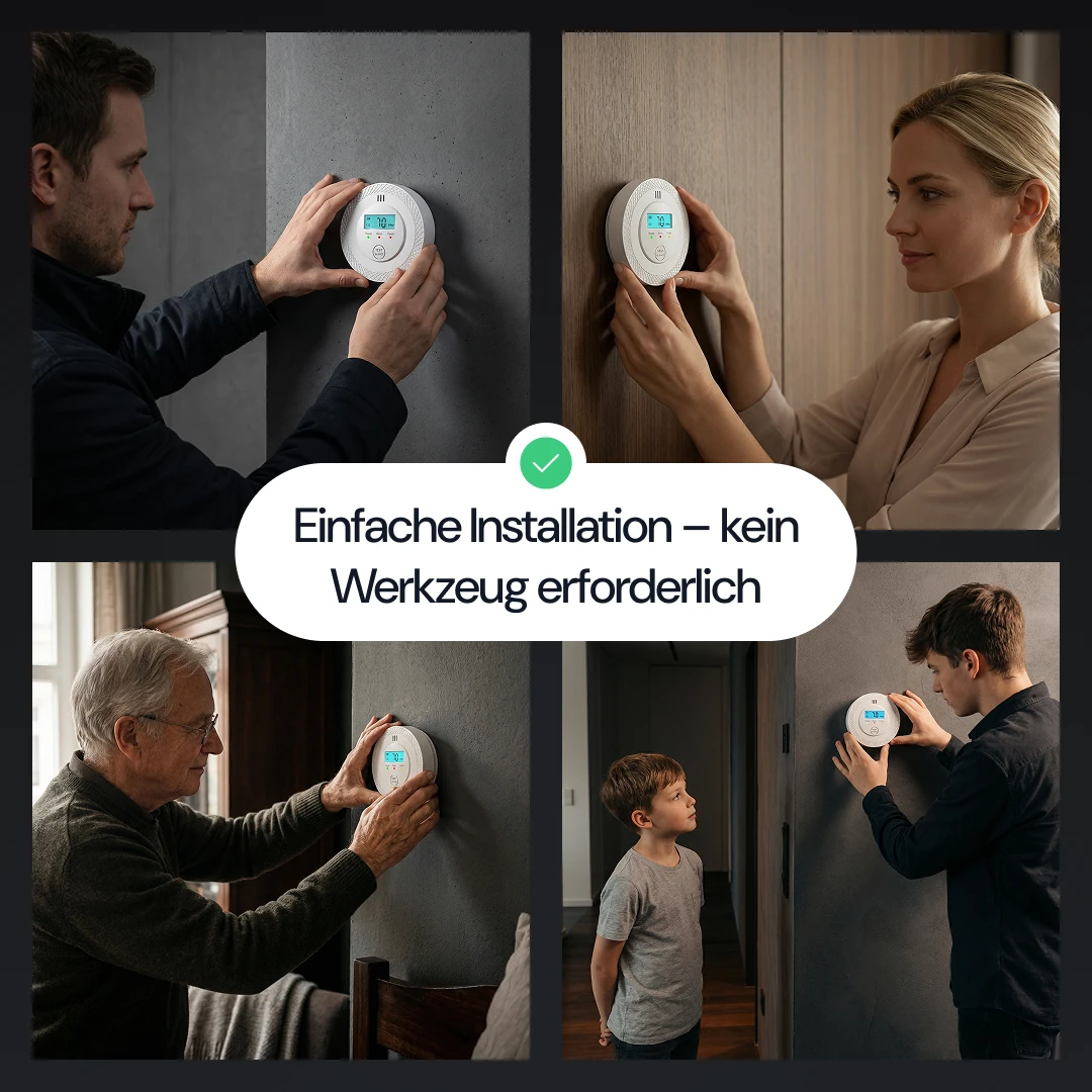 Nein. COalarm™ ist vollständig batteriebetrieben und in wenigen Sekunden einsatzbereit. Einfach platzieren oder montieren – kein Elektriker nötig.